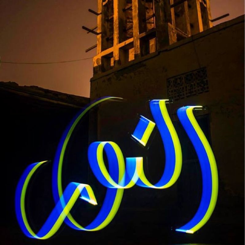 Light calligraphy using camera on tripod and one light with 2 colors, no photoshop