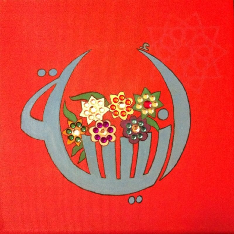 Calligraffiti, flowers in pot, spelling the name "Anisa"