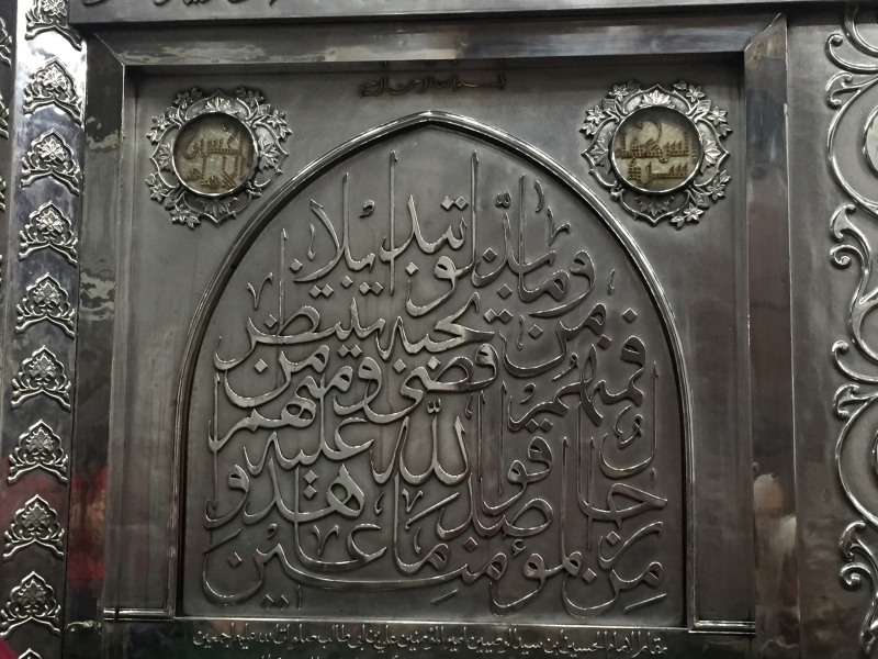 This Maqusurah was given as a gift from Abbas Ibn Ali as a tribute, because the head of El Hussein didn't have one. Thus, he donated his own as a tribute before he died in 680 AD approximately. (Meaning this calligraphy dates before the 15th century)