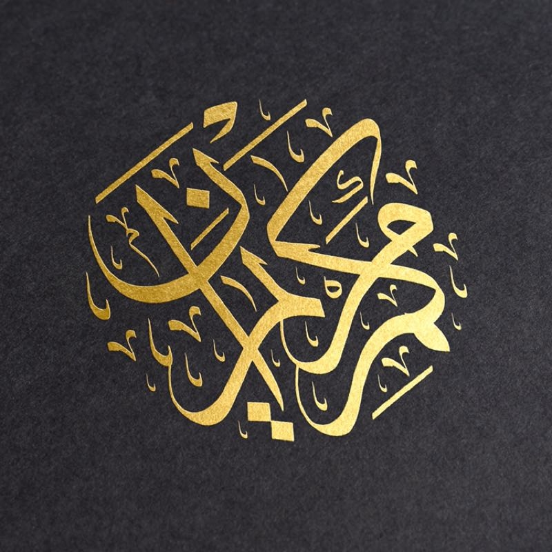 Arabic calligraphy wedding emblem design for Kamran and Mariam. Hand written in Thuluth script by Soraya Syed.